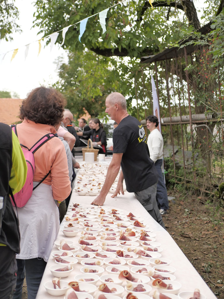 Dimanche 28 septembre, la randonnée Sur les Pas des Éleveurs accueillait 610 marcheurs pour sa 13ème édition. Au départ du stade de Béduer, les chemins ont mené les marcheurs à la rencontre des élevages de la Vallée du Célé. Une météo idéale pour les randonneurs qui avaient choisi un parcours balisé de 14km ou 19km.  Cet évènement coopératif devenu un rendez-vous annuel a vocation à connecter agriculture et société, à créer du lien entre producteurs et consommateurs autour d’un véritable moment de convivialité sur le territoire ! Le repas pris de fermes en fermes a rencontré un véritable succès auprès des marcheurs : les produits transformés sur la Fermes des Condamines à Béduer, la charcuterie Le Cayrolais de la coopérative Altitude, la viande de bœuf du territoire de l’association VERSOA, la truffade de la coopérative fromagère Jeune Montagne, les Rocamadour de la Ferme la Hulotte, le pain et la pâtisserie du Fournil des Falaises. Un menu copieux et gourmand qui a régalé petits et grands !