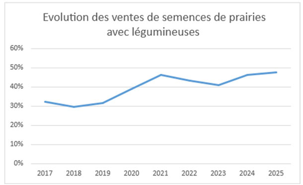 Le développement des méteils fourragers, associant céréales et légumineuses, permet notamment de sécuriser la production de fourrages tout en améliorant l’autonomie protéique et l’efficacité d’utilisation de l’azote. Parallèlement, l’enrichissement des prairies en légumineuses (trèfles, luzerne…) contribue à améliorer la productivité et la qualité nutritionnelle des fourrages tout en réduisant la dépendance aux engrais azotés grâce à la fixation symbiotique de l’azote atmosphérique. Ces prairies multi-espèces présentent une meilleure tolérance aux épisodes de sécheresse et participent à l’amélioration de la structure et de la fertilité des sols.